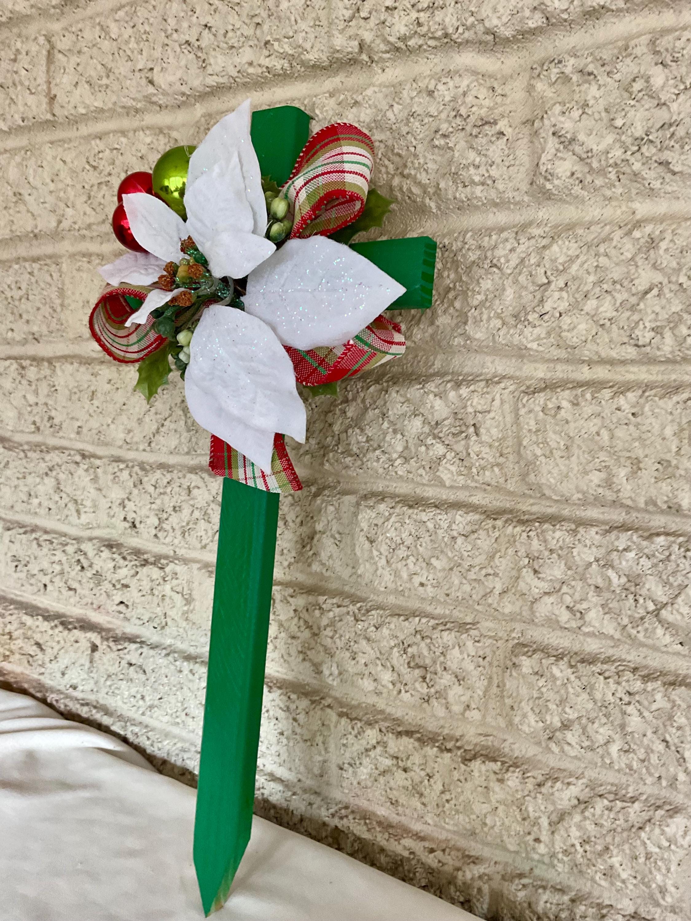 Handcrafted Christmas Cemetery Cross: White Poinsettia Grave Decoration