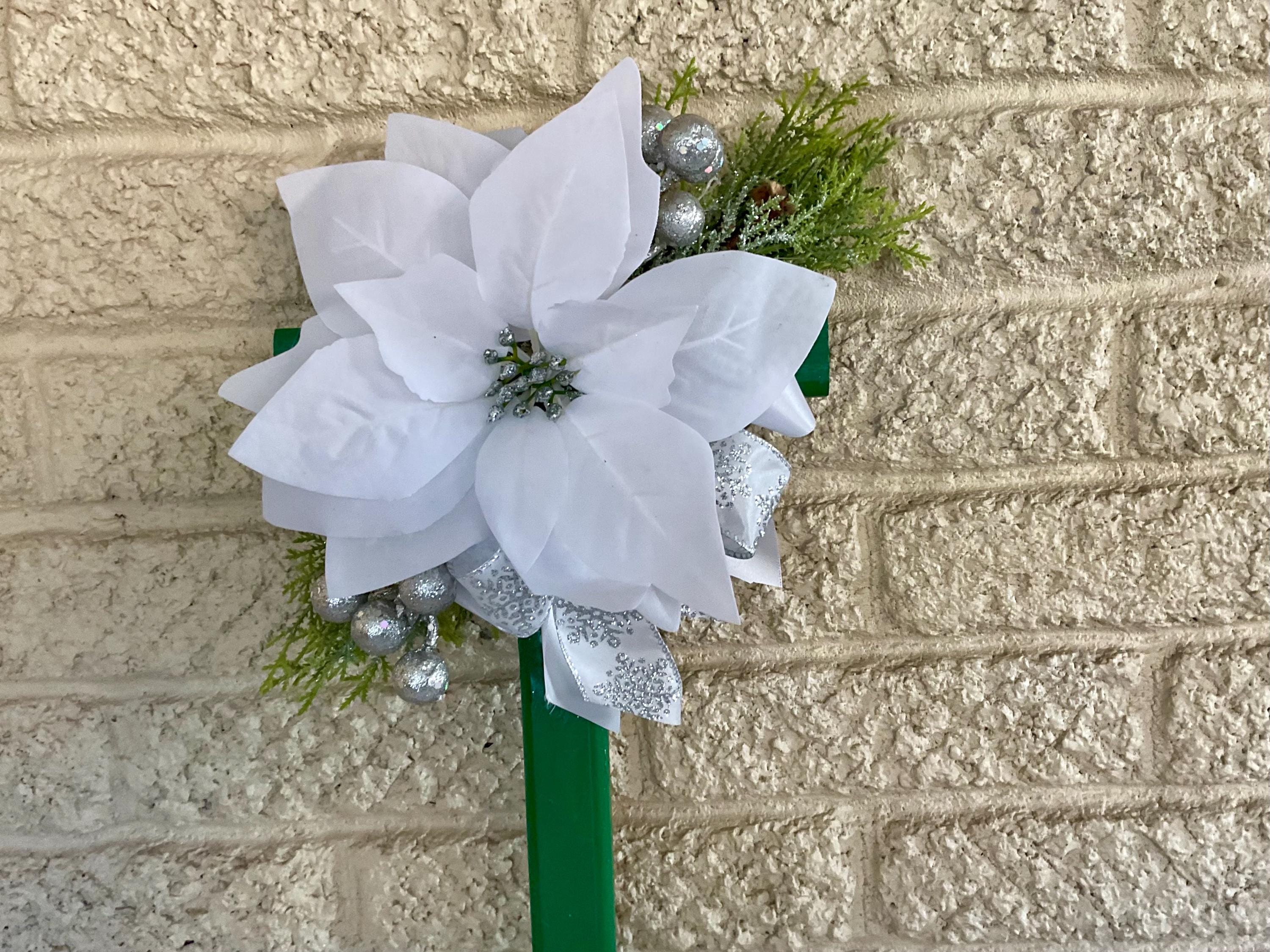 Christmas Cemetery Cross: White Poinsettia, Winter Grave Decoration