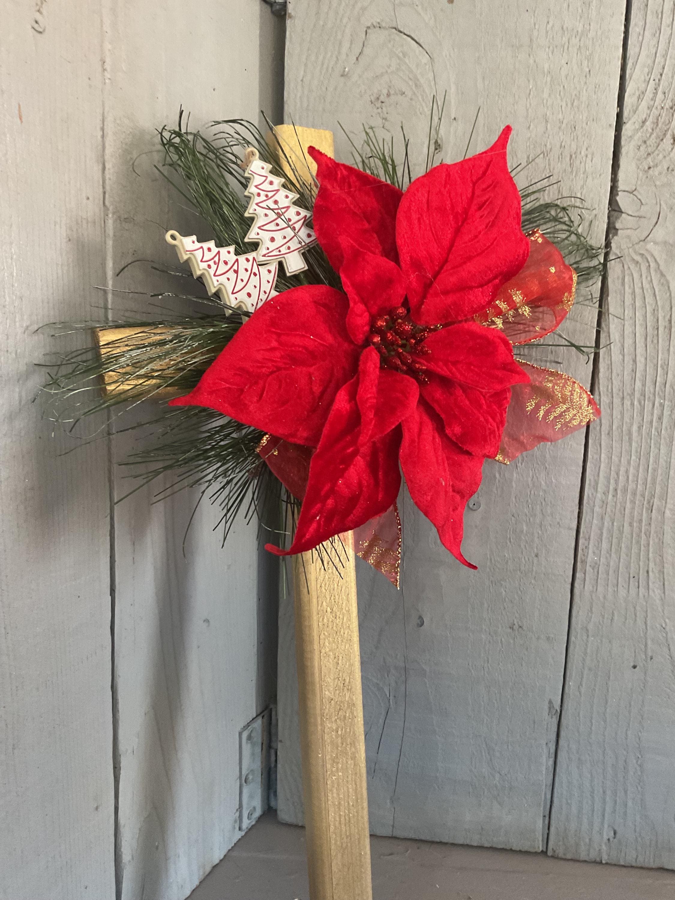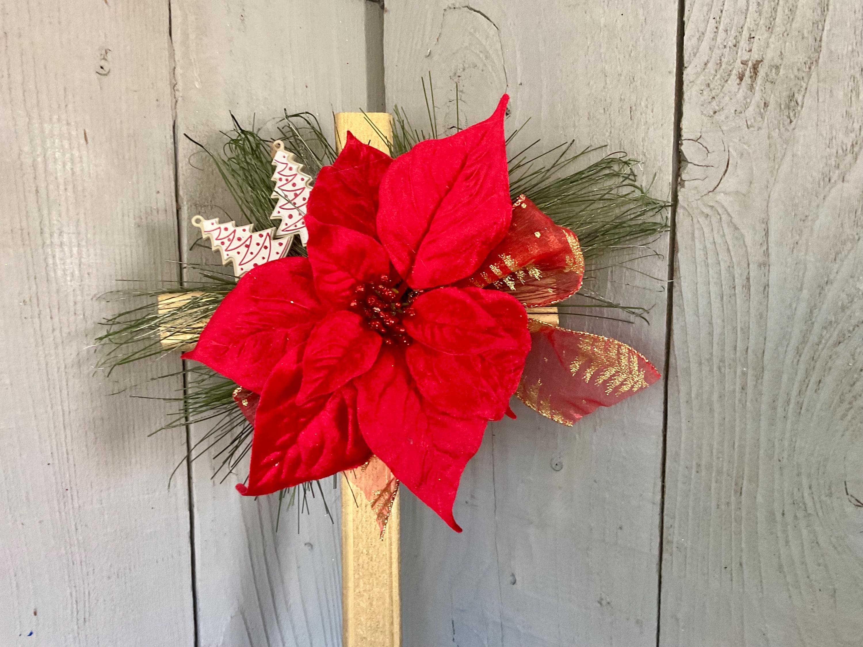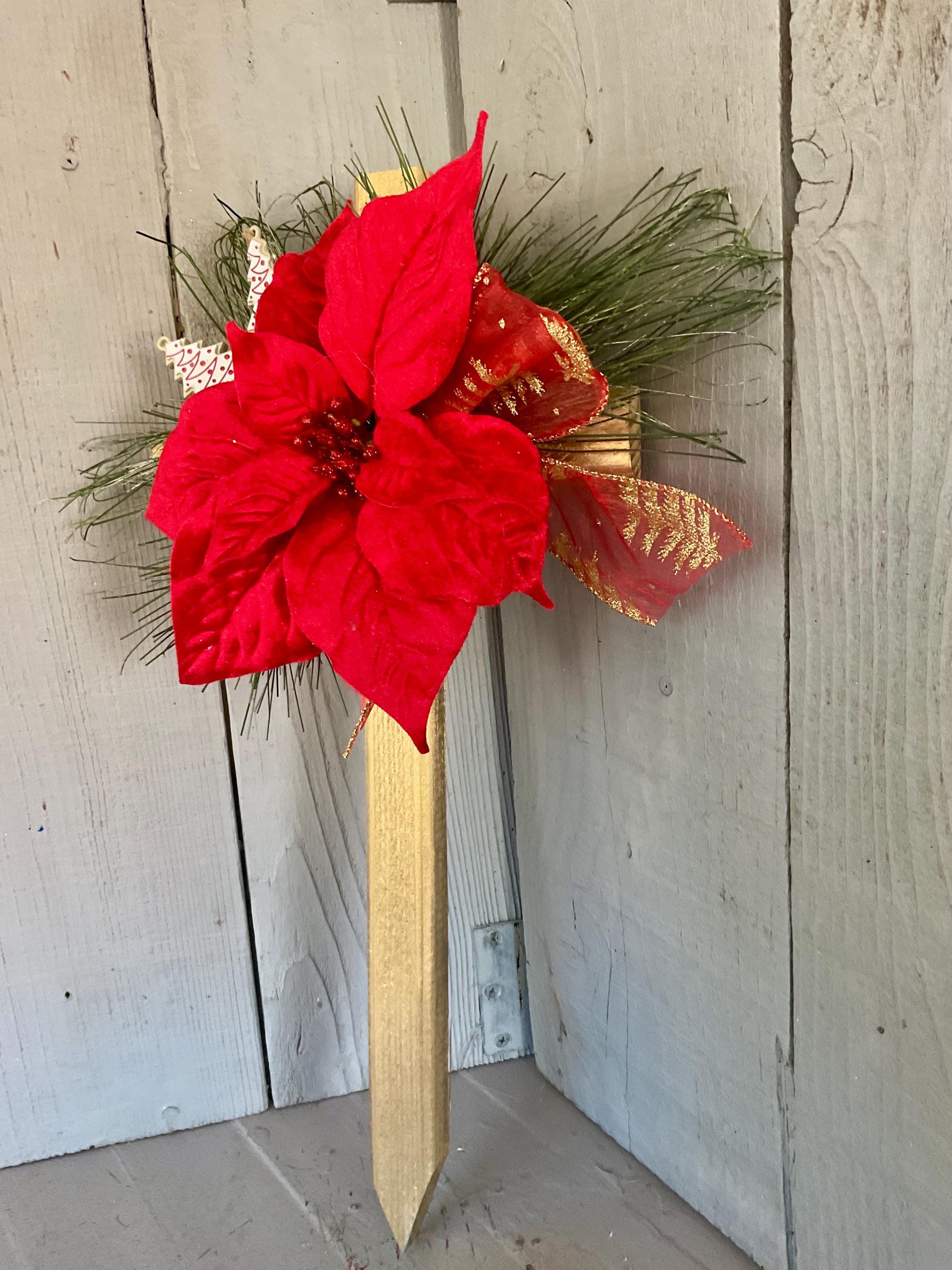 Christmas Cemetery Cross: Red Velvet Poinsettia, Christmas Grave Decoration