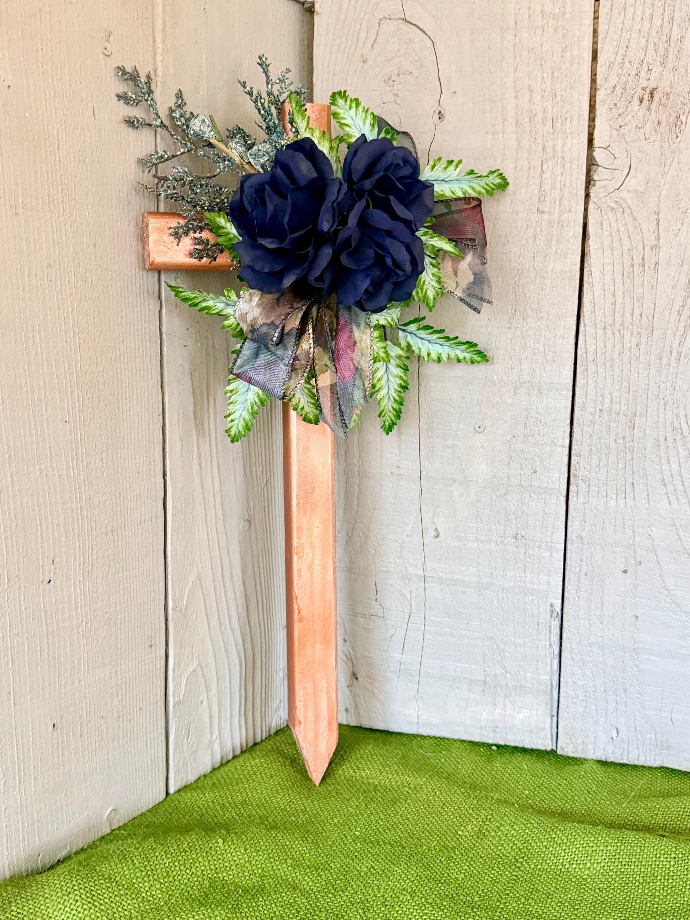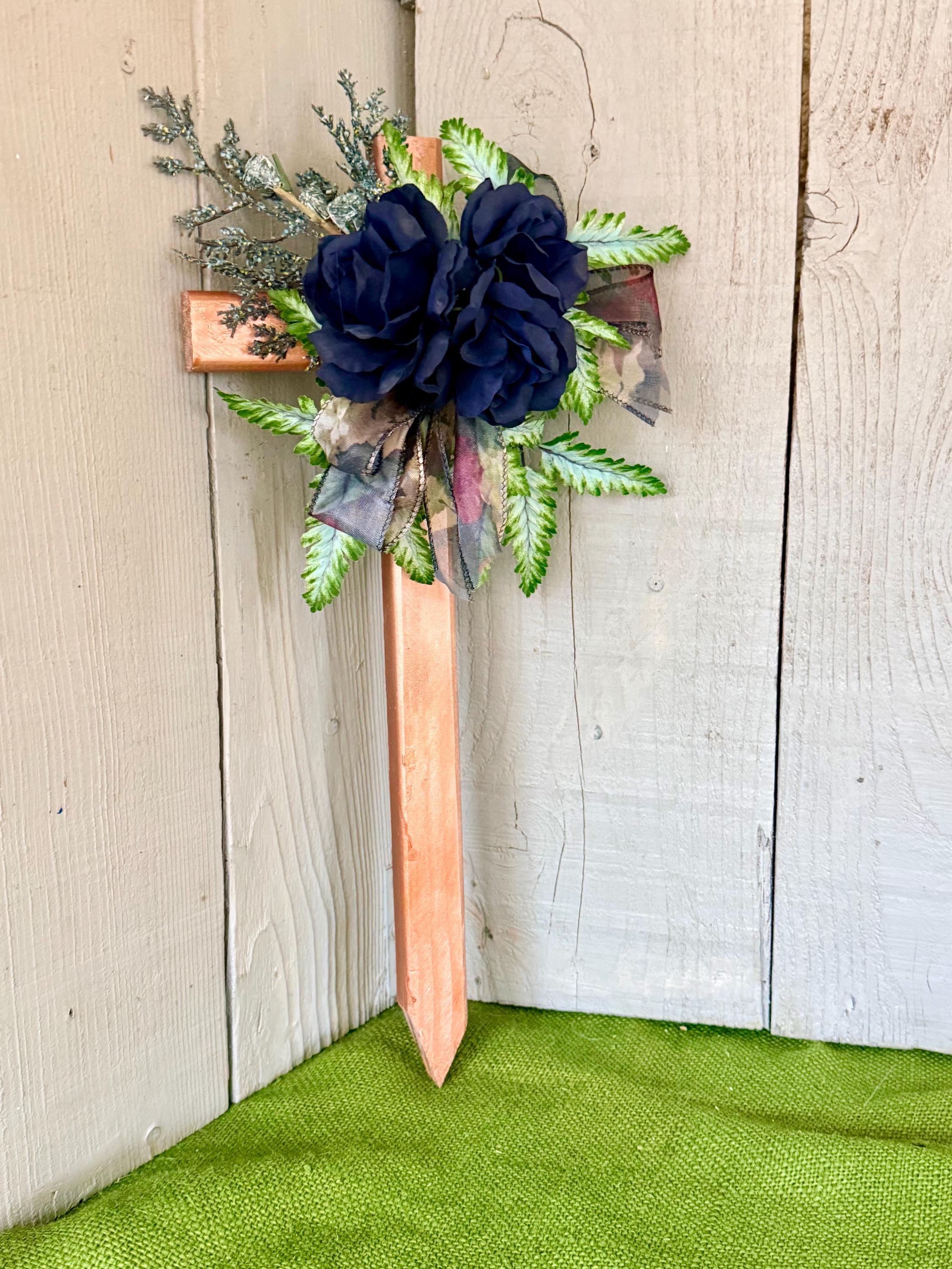 Blue Rose Cemetery Cross, Copper Memorial Grave Decoration