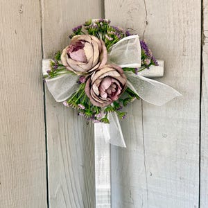 Hand-Painted Pine Cemetery Cross: Floral Grave Decoration